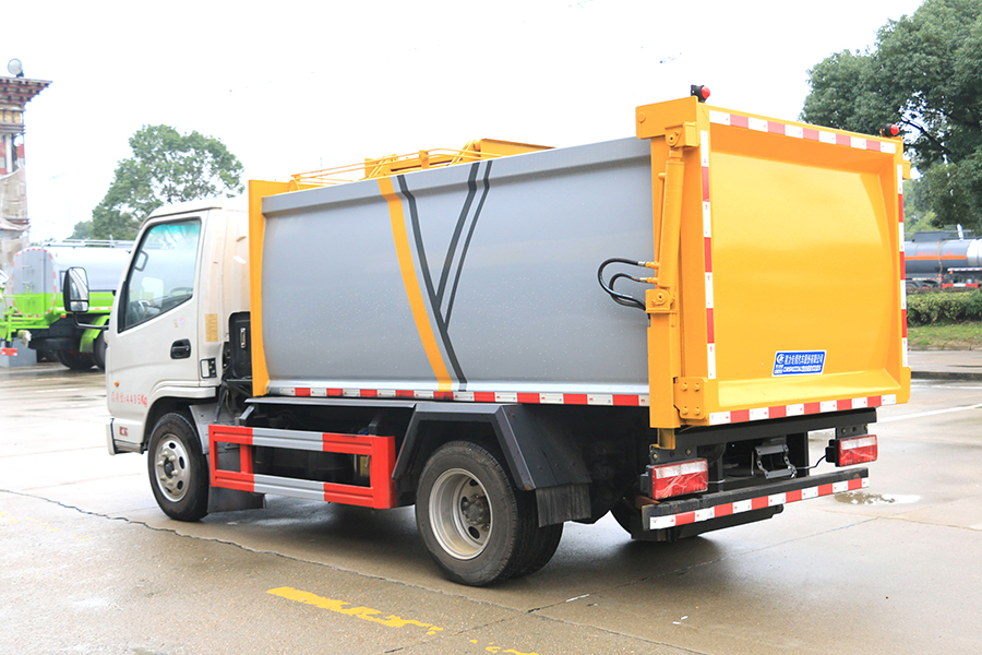 機械化自動裝卸垃圾,實現垃圾密封化運輸,有效地防止垃圾對人和環境的污染,提高汽車的運載效率,是一種安全、節能、環保、高效的新型環衛專用車。