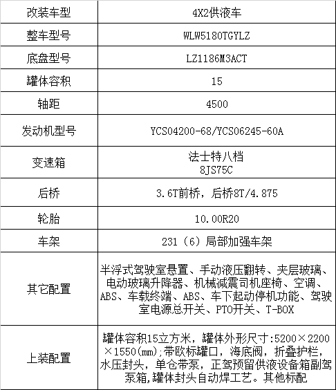 ①底盤:柳汽乘龍供液車(4*2)的發(fā)動機(jī)是大馬力發(fā)動機(jī)