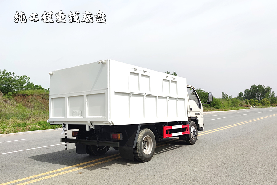 1.該車后卸,車廂頂部封閉不可開啟;主要用于垃圾轉運,主要裝置為廂體和液壓控制系統等專用裝置;側后防護裝置材料均為Q235,側防護連接方式為焊接連接,后部防護連接方式為螺栓連接;后部防護斷面尺寸(mm):100×50,離地高度(mm):480;僅選用2800mm軸距改裝;ABS系統控制方式為4S/4M,ABS型號為CM4XL-4S/4M,生產廠家為廣州瑞立科密汽車電子股份有限公司;發動機Q23-115E60,Q23-115C60對應油耗值均為11.3L/100km;隨底盤選裝駕駛室;該車型已安裝ETC裝置. |