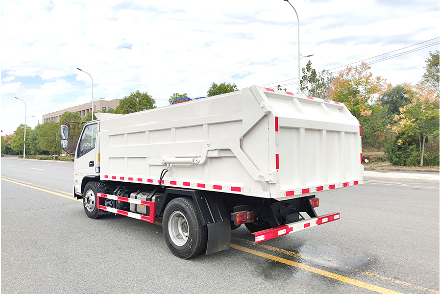 方形箱體,優質碳鋼制作,箱體底板4mm,邊板3mm,箱體選裝翼展蓋,液壓開啟,箱體后門剪刀式液壓開啟,后門帶密封條,國產油缸,國產多路閥;合肥液壓油泵,舉升油缸帶限位裝置,駕駛室電控操作,中置雙頂。
