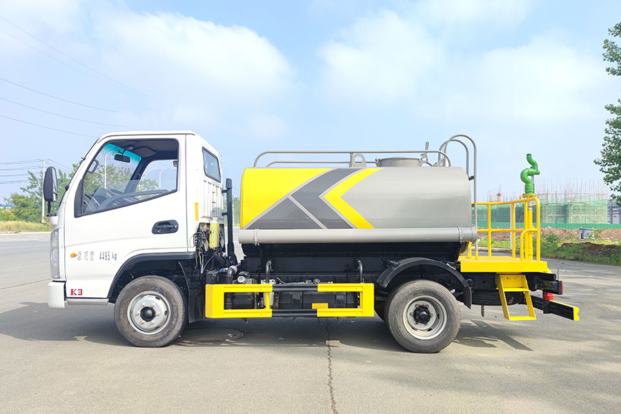 凱馬藍牌灑水車,標配前沖、后灑、側噴、后置式工作平臺、平臺上有高壓水炮(可360°旋轉,可調成柱狀最大射程35米,也可調成霧狀最大射程15米,可調成:直沖狀、大雨、中雨、小雨、毛毛雨),配備優質大功率專用灑水泵,取力器,雜物過濾網,國標通用65型消防接口(可通過消防栓加水)、1套自流球閥系統(可自吸自排,可從河里或池塘抽水到罐體,最大吸程7米),2根引水鋼絲膠管。水泵、取力器、球閥、濾網均為國家標準產品,主管道加粗,法蘭墊、法蘭盤加厚,萬向前沖,大通徑球閥,具有性能優良,工作可靠、效率高、流量大、維修方便等特點。