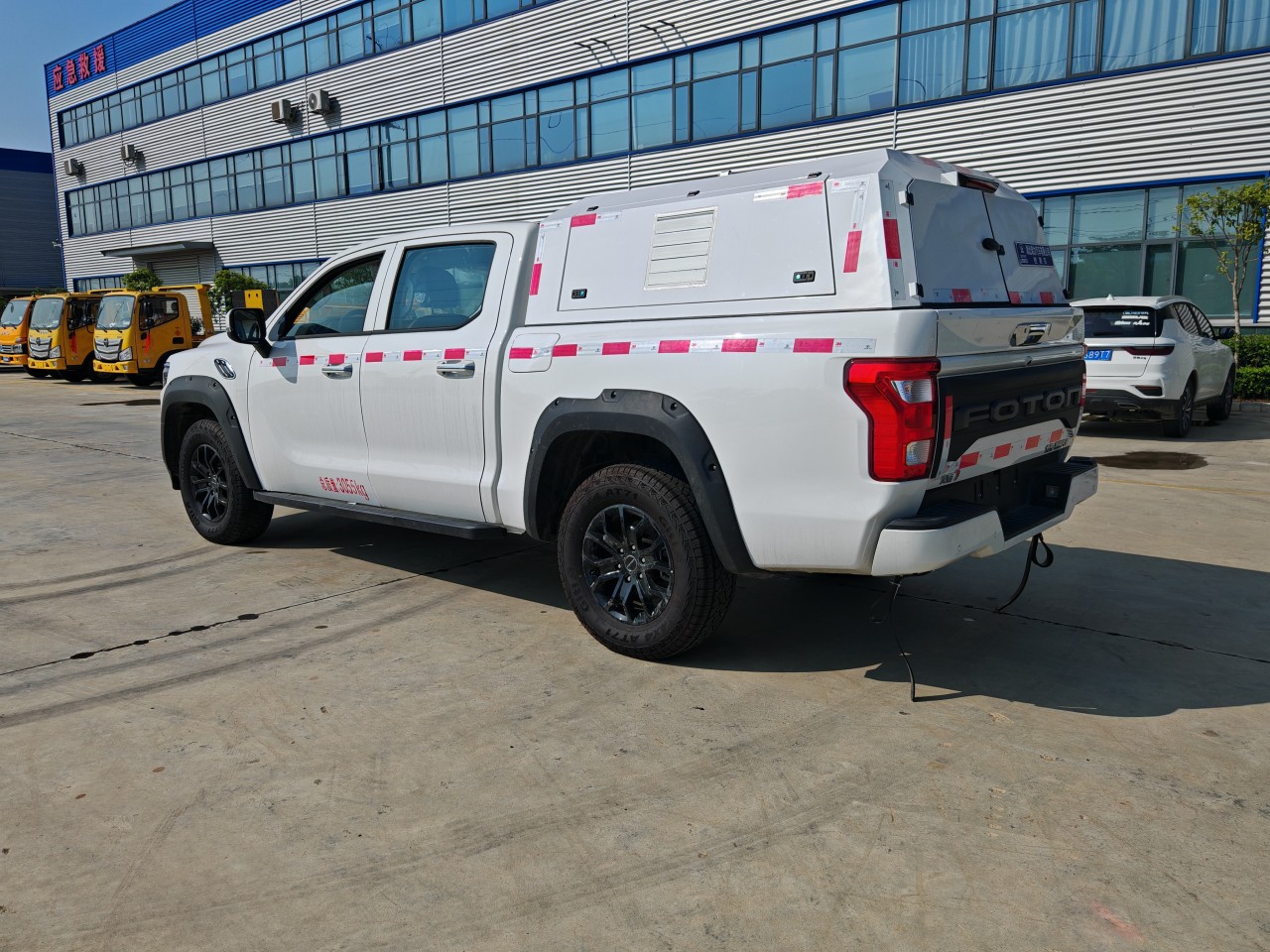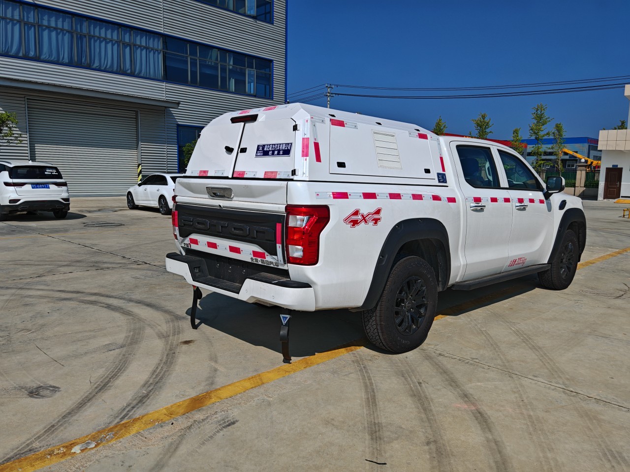 車廂頂部封閉,不可開啟;專用設(shè)備為專用液體、油品檢測(cè)儀、測(cè)量?jī)x、溫度計(jì)及顯示屏,主要用于油田及加油站油品的計(jì)量、質(zhì)量檢測(cè)和測(cè)量工作;安裝導(dǎo)靜電拖地帶